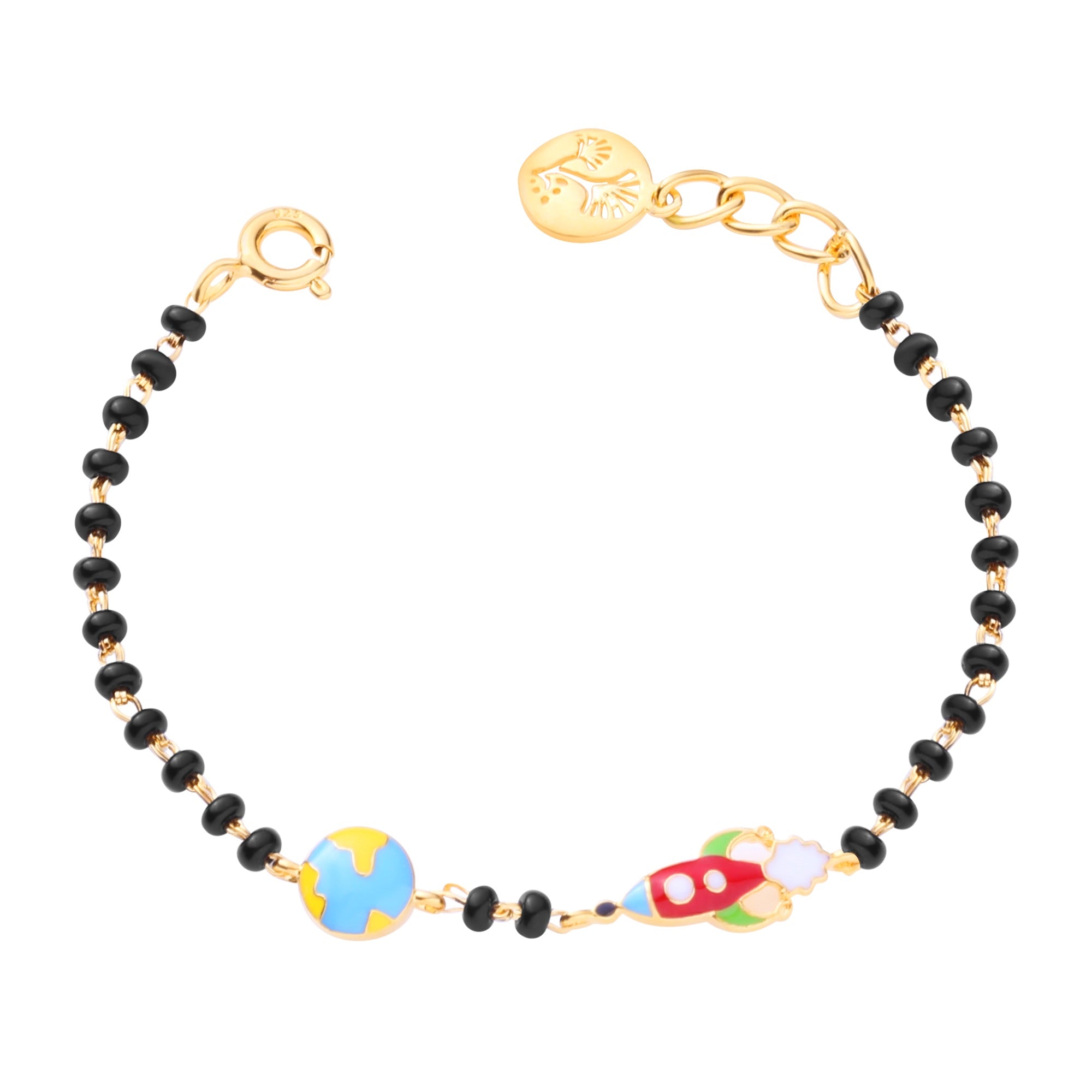 This vibrant nazariya celebrates curiosity and courage — featuring a colorful enamel rocket flying past a tiny blue-and-yellow Earth. Handcrafted in pure 925 silver with 24kt gold plating, it’s a playful take on protection and positivity for your little explorer.